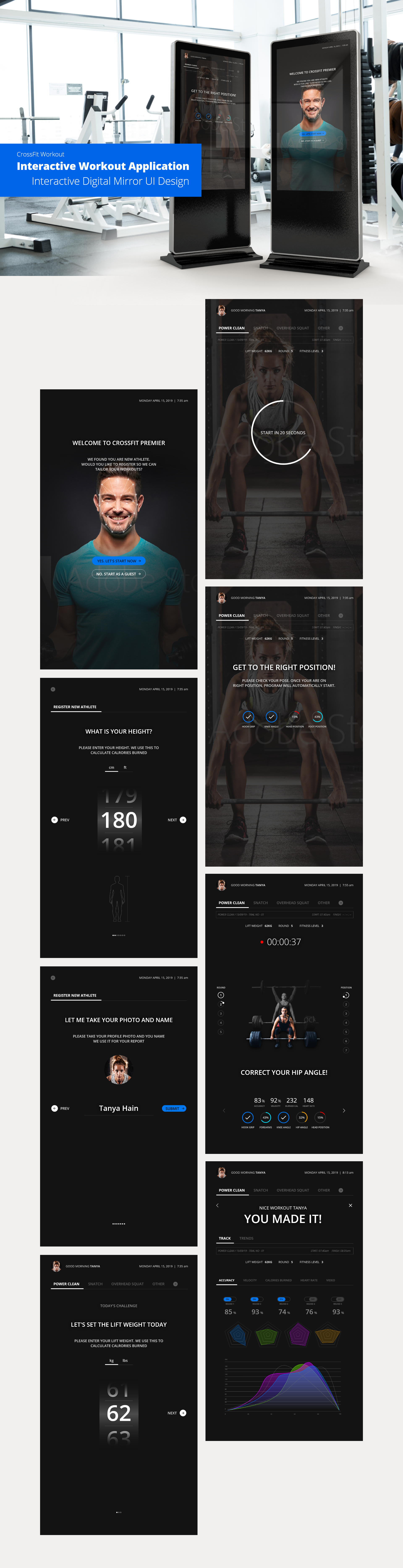 Interactive Mirror Workout Application UI Design